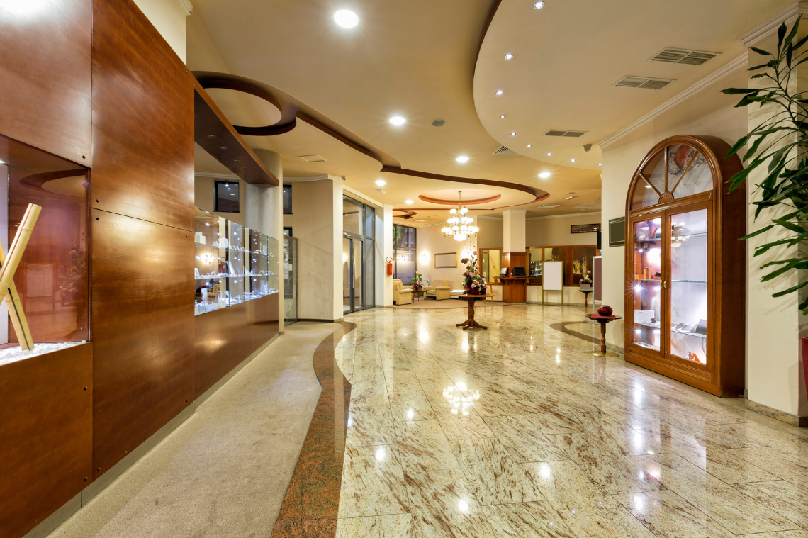 Sảnh lớn với trần cao, cửa kính rộng mở tràn ngập ánh sáng tự nhiên, tạo nên không gian thoáng đãng và đầy sức sống. Bao quanh khách sạn, mảng xanh được bố trí hài hòa từ trong ra ngoài, đem lại bầu không khí trong lành, nơi du khách vừa tận hưởng sự tĩnh lặng, vừa cảm nhận nhịp thở của thiên nhiên.